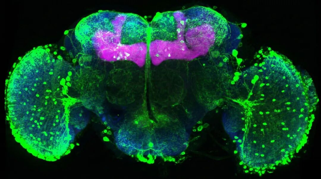 吃点糖会关闭果蝇(Drosophila melanogaster)的记忆,但不会清除掉记忆。这一果蝇脑部显微图像显示出一些参与此过程的神经。在系列实验中,研究者训练果蝇将特定气味与糖奖励联系起来。当单独给糖时,果蝇就不再主动接近自己已经学会搜寻的气味。研究者在果蝇脑细胞中发现了气味记忆的神经痕迹,但激活这些神经不会影响这些昆虫的行为。