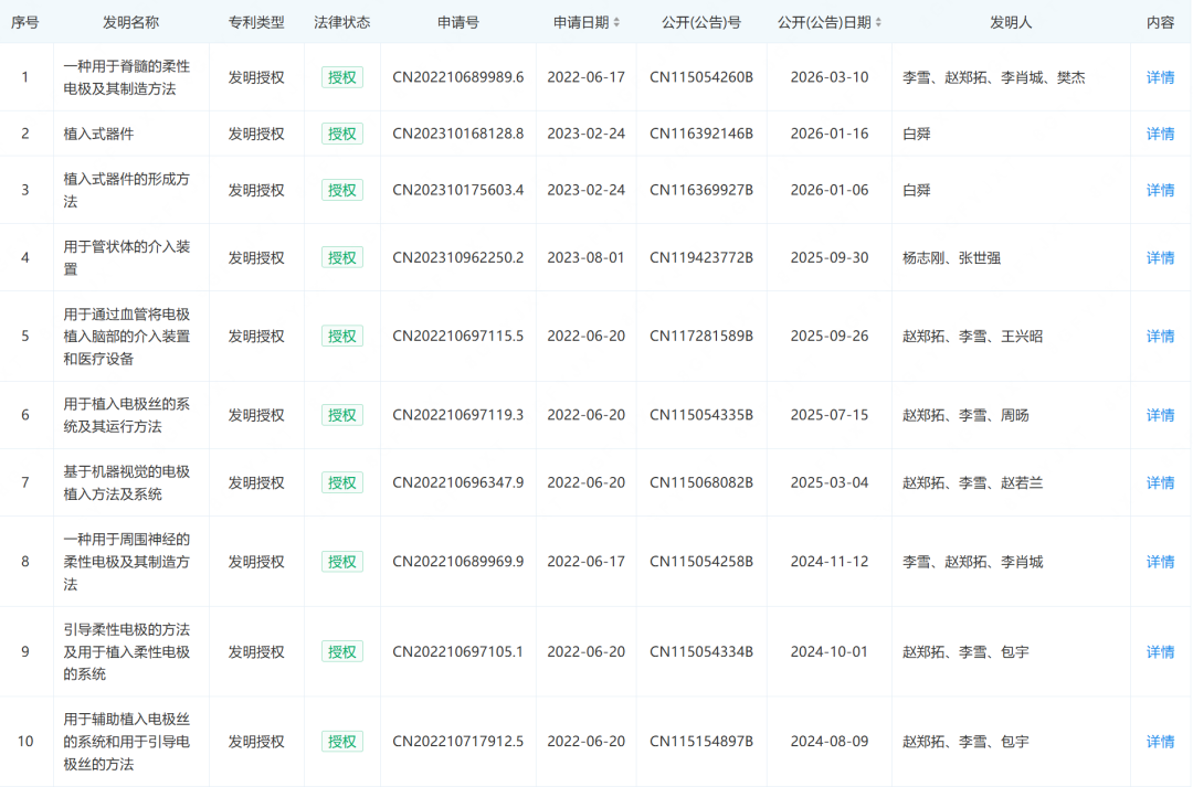 据神经未来查询企查查网站,该公司专利如下表: