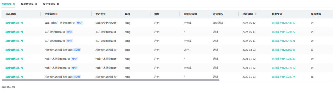 目前国内尚无原研产品上市,但已批准包括片剂、口服液、注射液在内的6种剂型。截至目前,国内共有19家药企持有盐酸倍他司汀片的生产批文。其中,通过或视同通过一致性评价的企业仅有4家,分别为乐普恒久远药业、河南中杰药业、天方药业,以及此次被暂停采购的森淼(山东)药业。