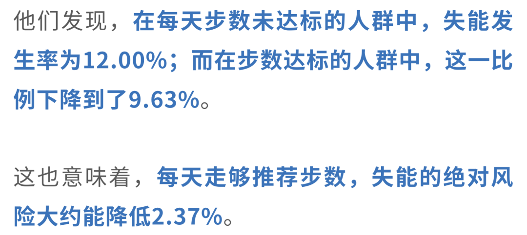 从数值上看,步数达标带来的失能绝对风险下降幅度,甚至比中高强度运动达标还略高一点。
