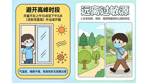 想和花粉“和平共处”,不是靠忍,而是靠防。记住四个字:躲、挡、清、强。