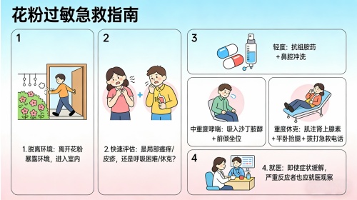 花粉过敏可轻可重,关键是快速判断、分级处理: