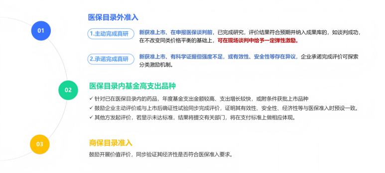 2026年国家医保谈判新药申报的截至时间仍然是 6月30日 。创新药如果针对参照药开展真实世界研究,得到更好的数据,那无疑将会大大增加进入2026年医保目录的可能,也为产品定价争取有利条件。国家医保局领导透露,今年的医保目录调整中,对于 新获批上市、且在申报医保目录谈判前已按完成参照药真实世界研究并纳入成果库的药品 ,可在现场谈判中给予一定的弹性激励。