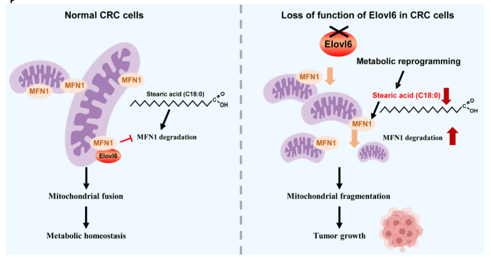 Bi Z, Chang X, et al. Elovl6 inhibits colorectal cancer progression through stearic acid-mediated mitochondrial fusion and metabolic reprogramming. Sci Adv. 2026 Feb 13;12(7):eadz2892.