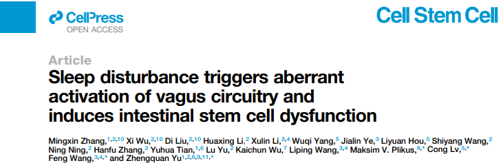 [1]Zhang M, Wu X, Liu D, et al. Sleep disturbance triggers aberrant activation of vagus circuitry and induces intestinal stem cell dysfunction. Cell Stem Cell. 2026;33(2):306-324.e8. doi:10.1016/j.stem.2026.01.002