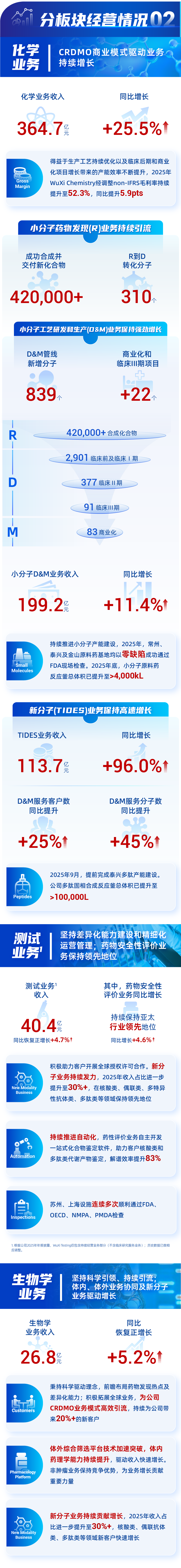 本文件为简报性质,并非意图提供有关公司、其证券或阁下可能需要用以评估公司的任何相关事项的完整表述。更多详细信息请见公司官网披露的药明康德2025年年度业绩和2025年年度报告,以及公司在上海证券交易所、香港联合交易所有限公司披露的文件和信息。请广大投资者谨慎投资,注意投资风险。