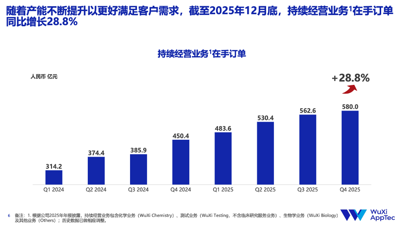 针对2026年的表现,药明康德已经大胆给出全年指引,预计持续经营业务收入将实现18-22%的同比增长,公司整体收入达到513-530亿元,突破500亿大关。