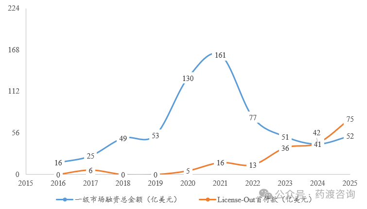 图5 2016-2025年License-Out交易首付款规模变化趋势图