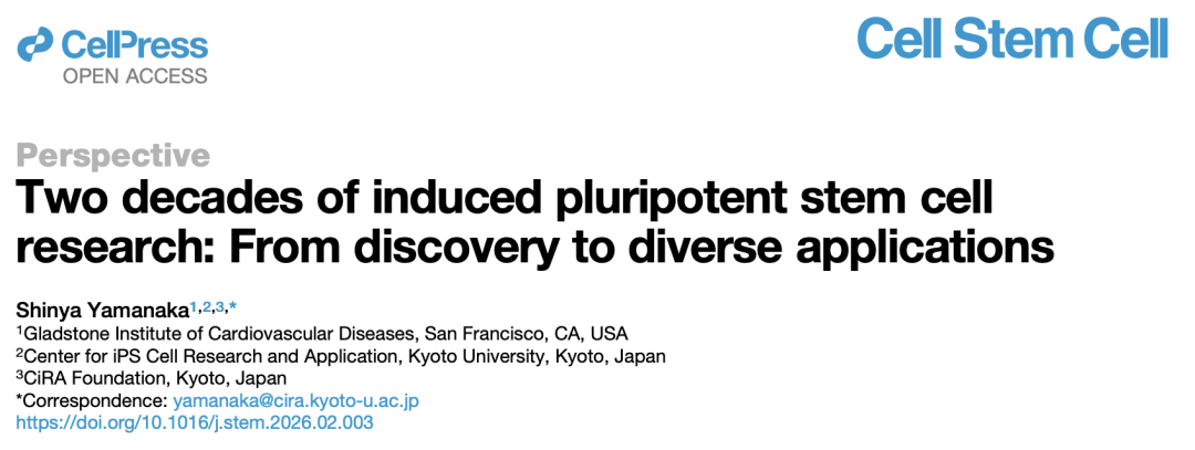 近日,诺贝尔奖得主山中伸弥教授在 Cell Stem Cell 期刊发表了题为:Two decades of induced pluripotent stem cell research: From discovery to diverse applications 的文章【2】。