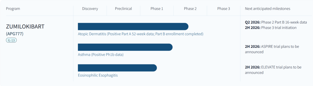 APG777是一种靶向IL-13的单克隆抗体。IL-13是驱动过敏性炎症的重要细胞因子,通过阻断IL-13信号通路,可有效缓解皮肤炎症、瘙痒及皮损。从机制上看,APG777并不新颖,但该药的差异在于通过抗体工程技术,极大延长了药物在体内的“存活”时间,从而维持更久的疗效。