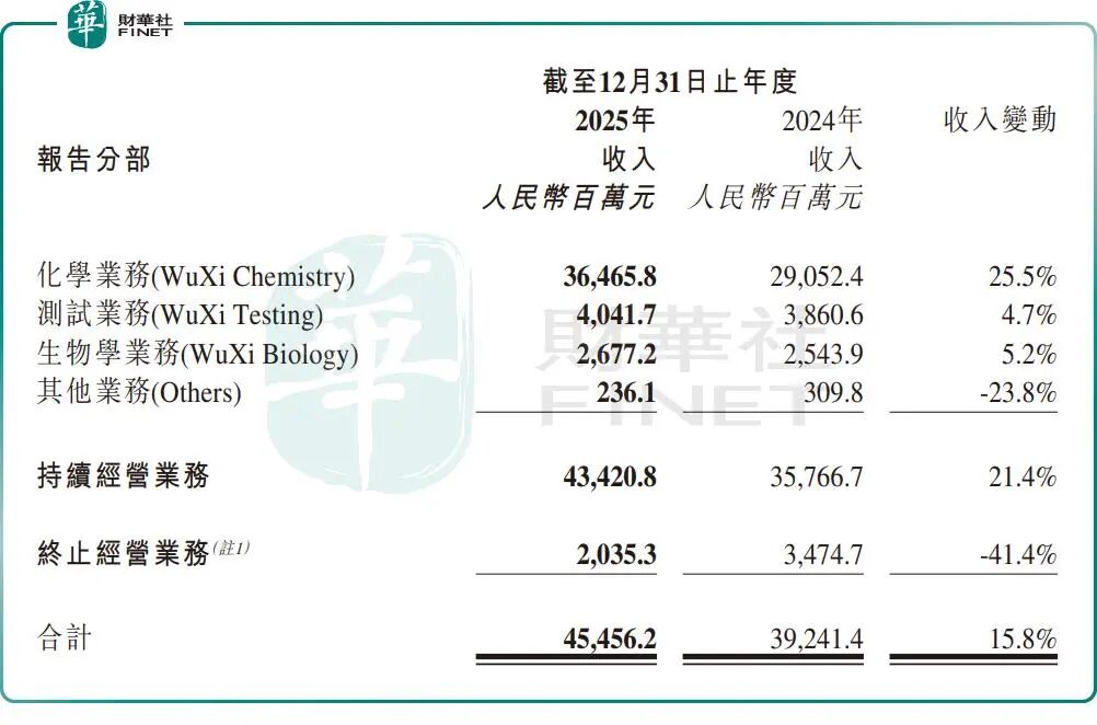 2025年,药明康德营收454.6亿元(单位人民币,下同),同比增长约15.8%。