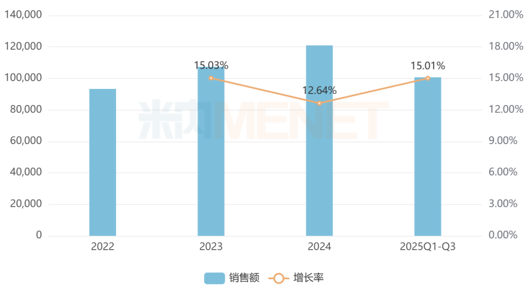 辽宁华润本溪三药的独家品种气滞胃痛片为国家医保甲类、OTC甲类(双跨)、全国基药品种,具有舒肝理气、和胃止痛的功效,可用于肝郁气滞,胸痞胀满,胃脘疼痛等。该药近年来在中国公立医疗机构终端均以两位数的增速增长,2025年前三季度其销售额超过1.3亿元,同比增长48.05%。