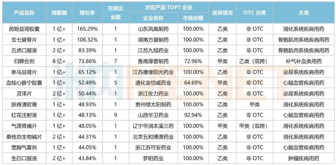 2025Q1-Q3中国公立医疗机构终端销售过亿且增速超43%的中成药