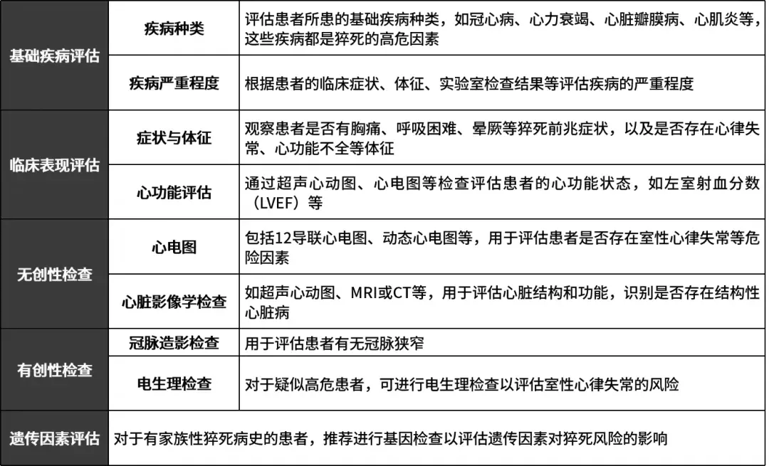 猝死(Sudden Death)是指自然发生、出乎意料的突然死亡。世界卫生组织(WHO)将发病后6小时内死亡者定义为猝死,但多数学者倾向于将猝死的时间限定在发病1小时内。患者发生猝死前可能有一些前驱症状,如心悸、胸闷、头晕等,但往往不被重视或未能及时识别,从而导致突然死亡。猝死的常见原因主要包括心脏原因和非心脏原因,其中心源性猝死最为常见[1]。临床医生对有基础疾病的猝死患者进行风险分层和抢救是一个复杂而重要的过程,涉及多个方面。风险分层是评估患者发生猝死风险的重要步骤,有助于临床医生制定个性化的预防和治疗策略。对于有基础疾病的患者,风险分层主要基于以下几个方面,详见表2。年轻人长时间工作、学习或运动,以及经常熬夜,会导致身体过度疲劳。此外,年轻人常常因为工作忙碌或追求便利而选择外卖或快餐,这些食品往往重油、重盐、重辣,且营养不均衡。长期不健康的饮食习惯会增加心血管疾病的风险,进而增加猝死的发生率。