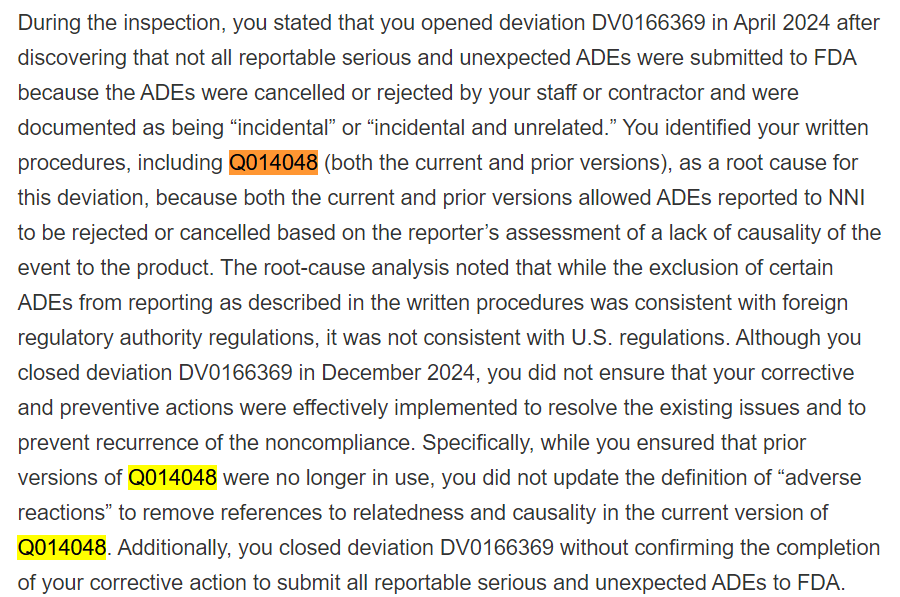 答案是没有。FDA的检查员在现场发现:大量案件在系统里长期处于“待审查”状态,形同虚设;外包公司的关键通话录音被随意丢弃;一起自杀死亡案件,企业压根没启动任何调查。