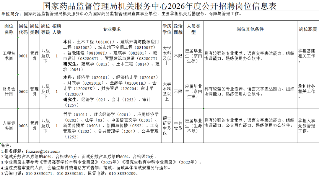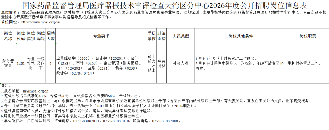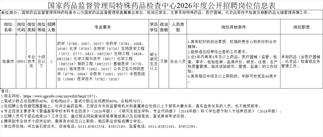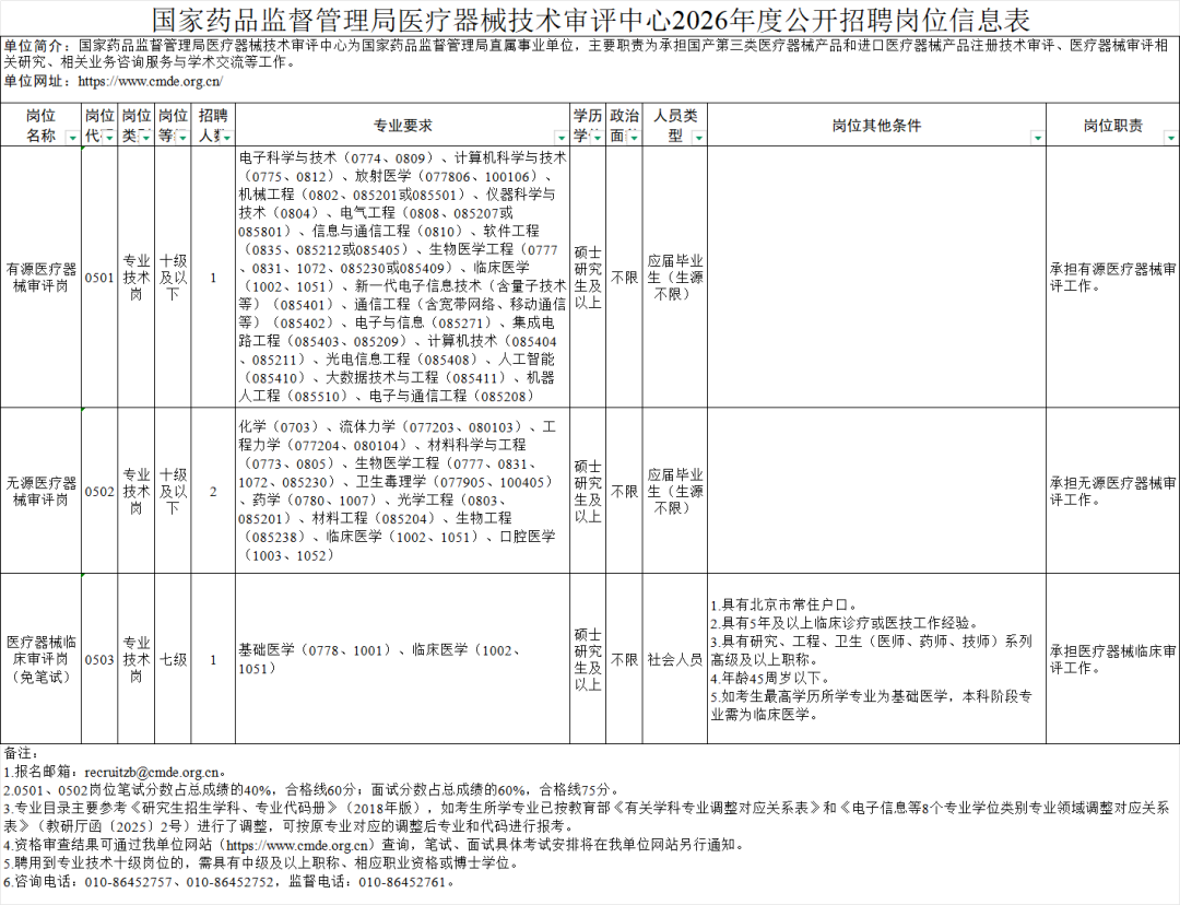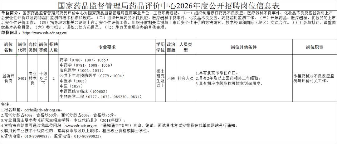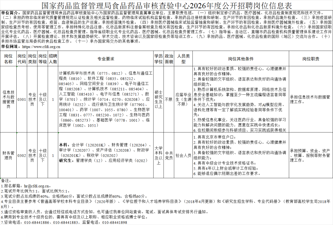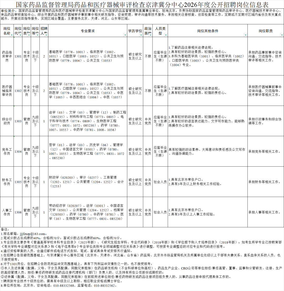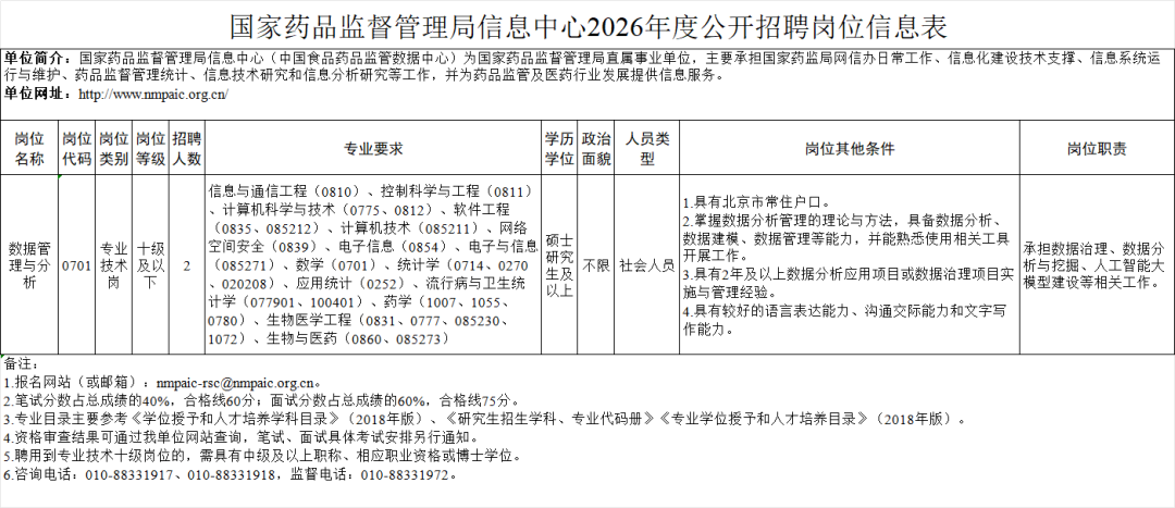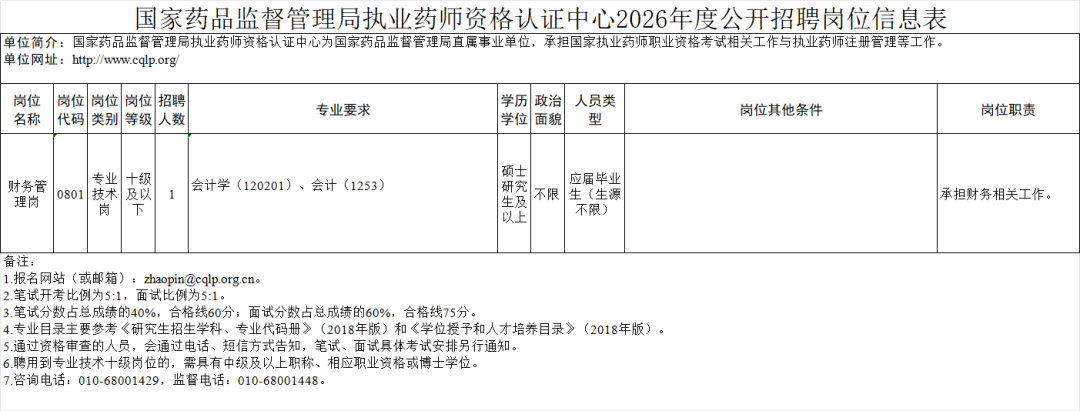 根据考试、考察和体检结果,确定拟聘人员。在中央和国家机关所属事业单位公开招聘服务平台、国家药监局网站等对拟聘人员进行公示。公示期为5个工作日。