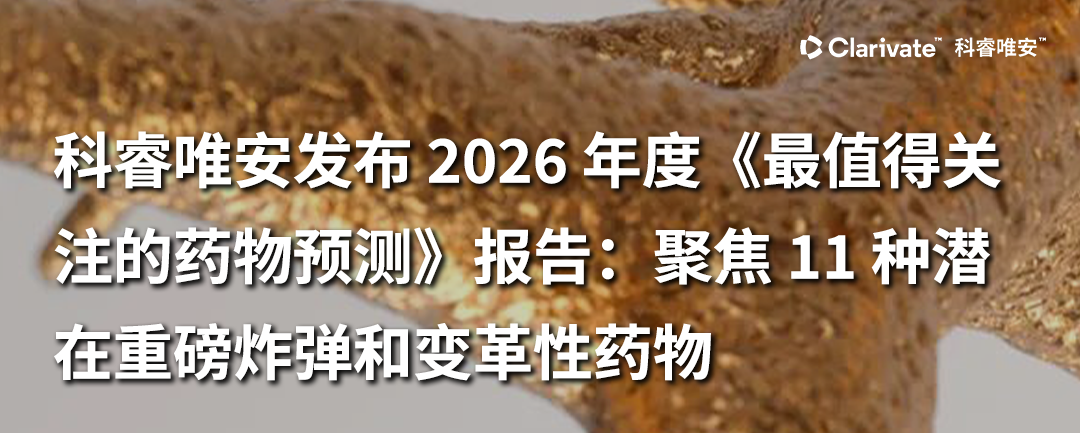 2026 年 3 月 26 日(周四)14:00,科睿唯安将举办主题为“高山景行,长风破浪——2026 年全球和中国最值得关注的药物”的网络直播研讨会,我们隆重邀请了璞源創新创始及管理合伙人包骏博士、德睿智药首席商务官林剑先生以及科睿唯安生命科学与医疗健康事业部资深顾问鲍书馨女士为大家带来精彩的报告及深刻的洞见。欢迎注册参会!