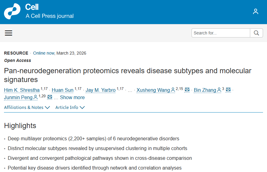 Cell重磅发布!首次系统绘制迄今为止最全面的“泛神经退行性疾病图谱”,蛋白质组学新突破揭示疾病亚型与共享机制