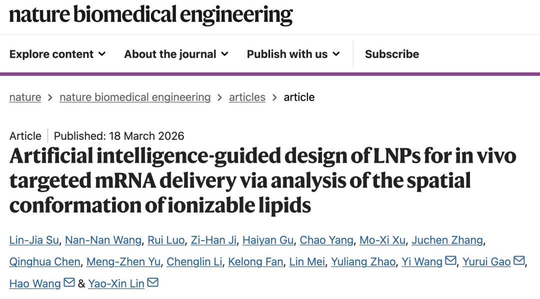 Nature子刊:林耀新团队等利用AI设计新型LNP,实现mRNA的体内精准靶向递送,有效抑制肿瘤生长