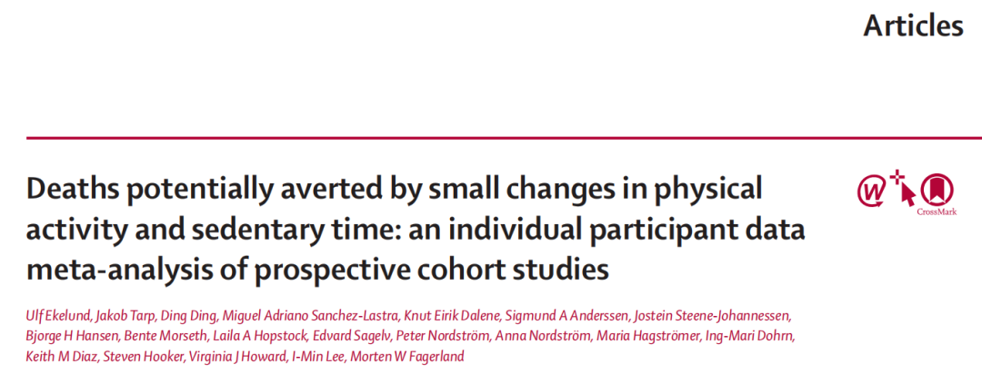近日,挪威体育科学学院领衔的国际科研团队在国际顶尖医学期刊《柳叶刀》(The Lancet)发表了题为:Deaths potentially averted by small changes in physical activity and sedentary time: an individual participant data meta-analysis of prospective cohort studies 的研究论文。