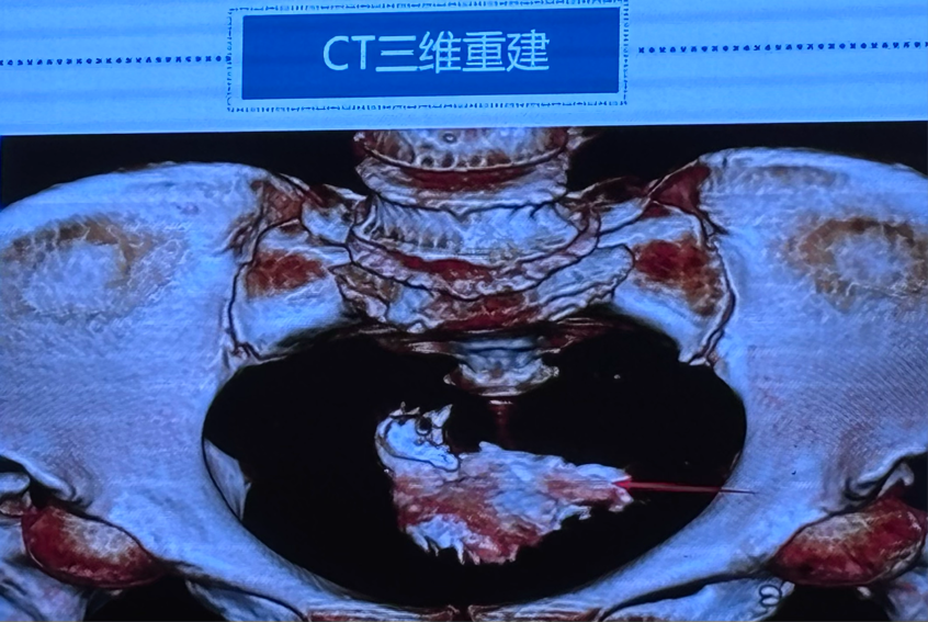 ➤盆腔CT提示:存在密度较高的异物。