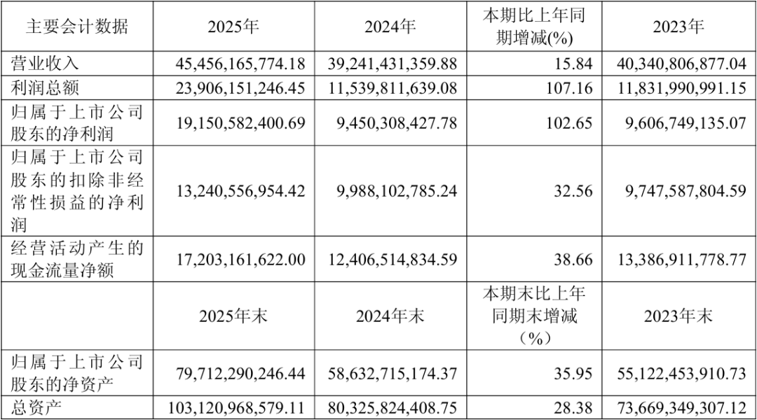2025年,药明康德核心财务指标表现突出:全年实现营业收入454.56亿元,同比增长15.84%;持续经营业务收入434.2亿元,同比增长21.40%。利润端尤为亮眼,归属于上市公司股东的净利润191.51亿元,较上年大幅增长,每股收益达6.70元。