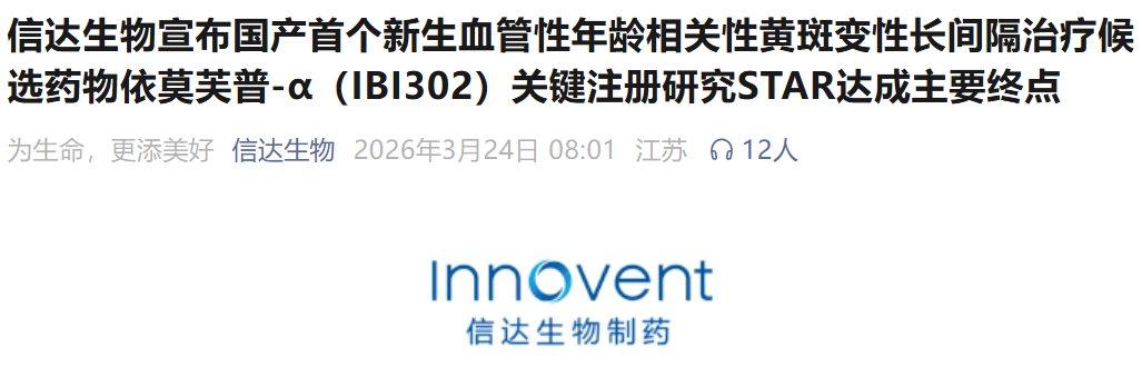 依莫芙普-α是信达生物在眼科领域布局的核心品种之一。公司已构建起覆盖眼底疾病、干眼症、青光眼等多领域的眼科产品管线,通过自研与外部合作双轮驱动,持续丰富创新产品矩阵。除依莫芙普-α外,公司还布局了针对糖尿病性黄斑水肿、视网膜静脉阻塞等适应症的在研项目,致力于为眼底病患者提供从急性期治疗到长期管理的全周期解决方案。