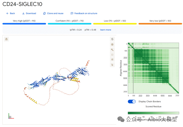 6)AlphaFold3输出结果分析,各项置信度指标的含义,以及如何判断预测的准确度,如pLDDT,ipTM,PTM,PAE。