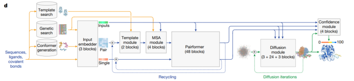 a)扩展到了多种生物分子的复合物结构预测,包括蛋白质-DNA、蛋白质-RNA、蛋白质-小分子,并使用扩散模型。