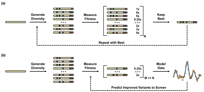 a)三类方法在不同程度上探索蛋白质序列空间: