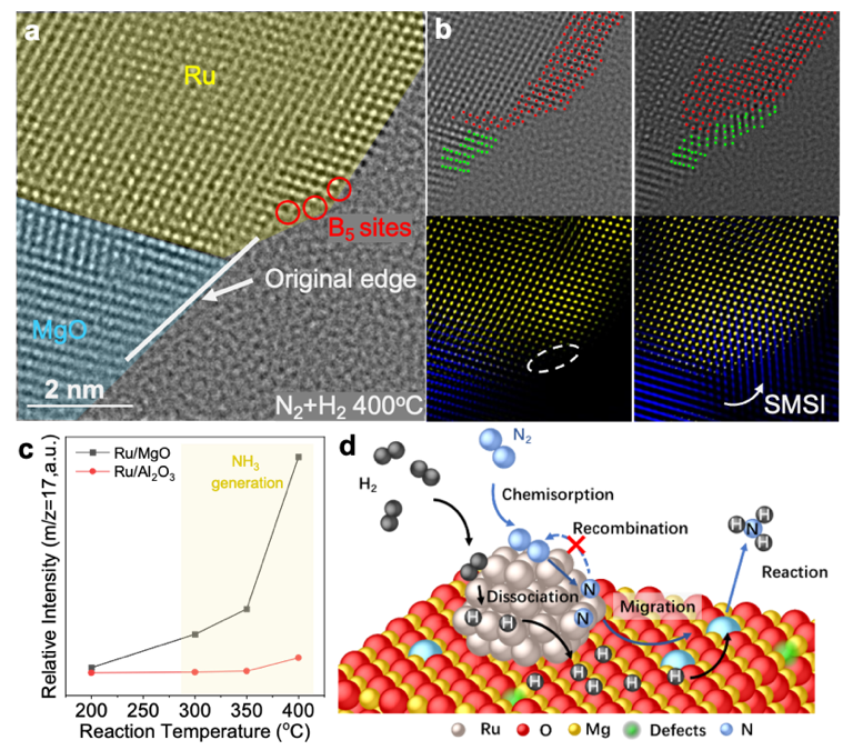 图:原位观察的Ru/MgO高效合成氨催化剂反应过程中表面原子结构和成分变化及载体作用机理