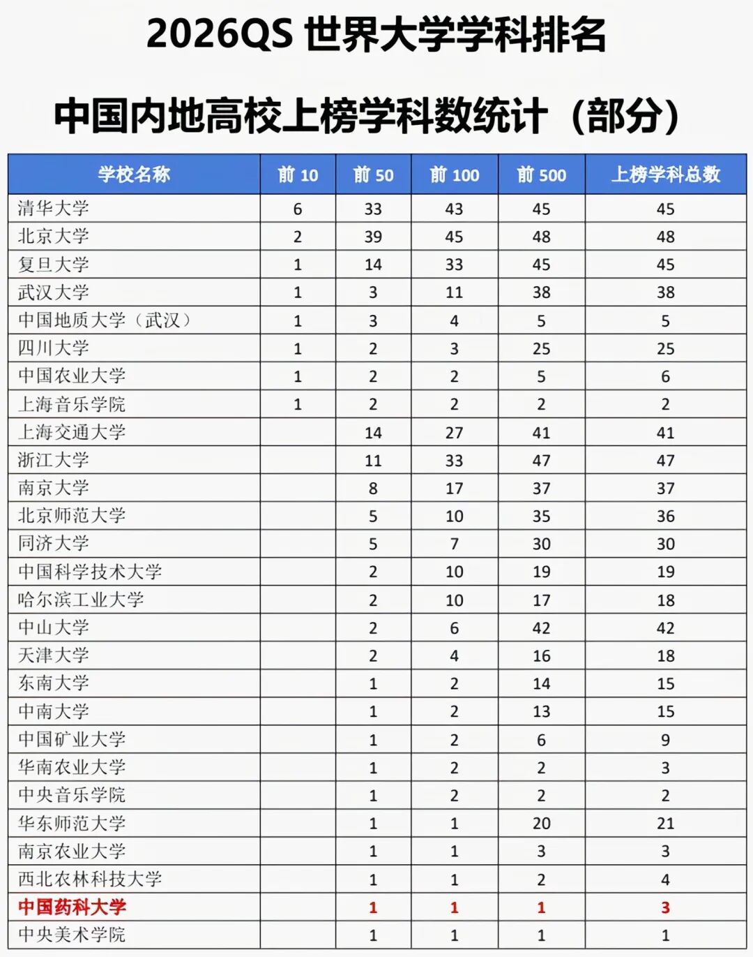 历史性突破!中国药科大学学科排名位列全球第41名,跻身世界50强!在医药类院校名列前茅