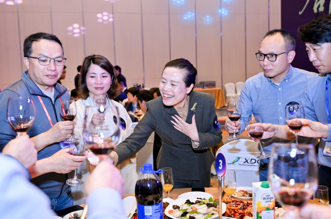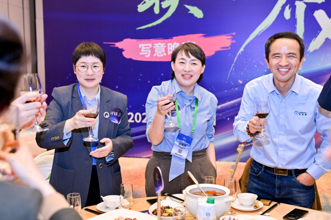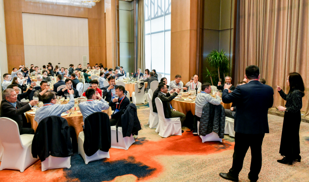 三位致辞嘉宾共同登台祝酒,将晚宴气氛推向高潮。席间,嘉宾们举杯畅谈,从技术合作到产业趋势,从项目推进到未来展望,思想火花在杯盏交错间持续迸发。