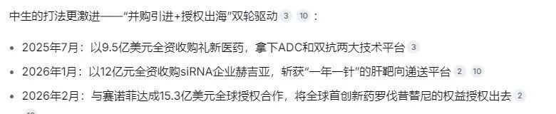 也就是说,这两家公司的逻辑已经分野:恒瑞在“卖”,中生在“买+卖”。 一个靠研发存量变现,一个靠资本运作扩张。