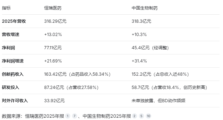 这两天,国内两家制药巨头恒瑞医药、中国生物制药(简称“中生”)前后脚发布2025年财报。