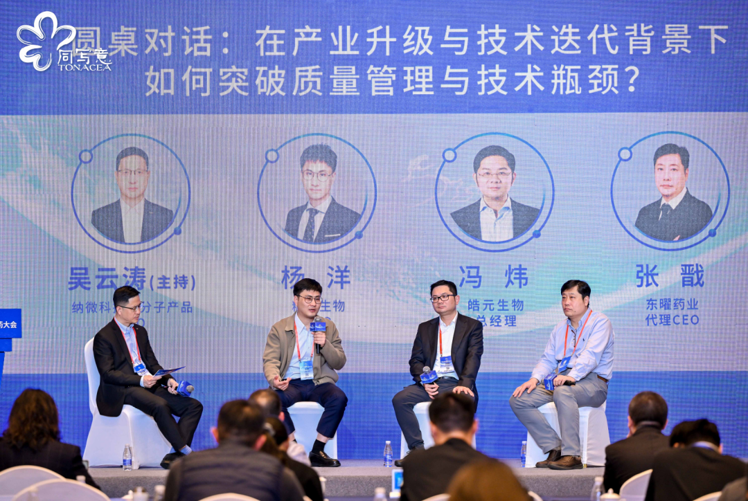 圆桌对话由纳微科技大分子产品CTO吴云涛主持,众生睿创、糖岭生物、东曜药业、皓元生物等企业高管共同参与。在产业升级与技术迭代的背景下,随着XDC药物进入商业化放量期,建立从源头到终端的全链条质量控制体系,已成为企业决胜市场的核心竞争力。