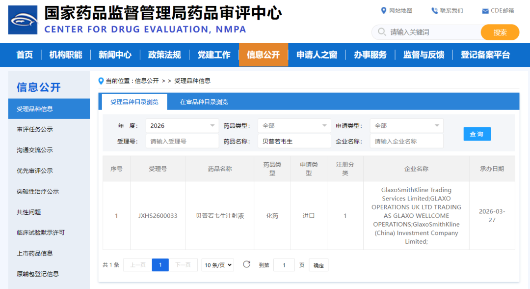 3 月 27 日,葛兰素史克(GSK)反义寡核苷酸(ASO)疗法贝普若韦生注射液的(Bepirovirsen,GSK836)上市申请获 CDE 受理,拟用于慢性乙型肝炎病毒感染者的有限疗程治疗,适用人群为:核苷(酸)类似物在治、HBsAg≤3000IU/mL、无肝硬化的成人慢性乙型肝炎病毒感染者。此前,该疗法已被 CDE 纳入突破性治疗品种和优先审评名单。
