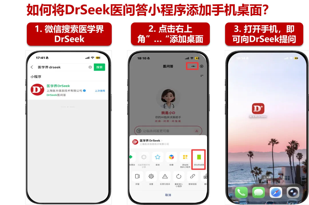 这些问题不是某一个人的困境,而临床医生共同的挑战。医学知识快速增长,而医生们获取、消化、应用这些知识的时间和能力,却始终是有限的。 无论身处三甲医院还是基层诊所,无论资历深浅、经验多寡,每一位医生都希望给予患者最好的治疗,但“最好的”标准在快速更迭。医学界DrSeek,正是为此而生。不做简单的信息堆砌,而是深度理解临床场景,严格遵循循证医学规范,致力于成为每一位热爱循证、敬畏生命的医生最信赖的“循证AI”——让前沿的循证证据,抵达每一位需要它的医生手中。因为,追求更好的决策,是我们共同的初心;而拥有更好的工具,是我们共同的权利。DrSeek的回答,均严格锚定国内外权威指南、药品说明书及核心顶刊文献。不仅在输出答案,更是在提供证据链。结论附有原文出处,部分支持一键跳转核实。无论是“患者EGFR突变阳性,一线奥希替尼耐药后怎么办?”这样的方案调整,还是“抗生素首剂需要加倍吗?”的用药场景,都能精准解析提问,深度识别“诊断、鉴别、用药、手术时机、预后评估”等真实临床意图。在查房时,它能帮您快速梳理诊疗思路;在急诊时,它能秒级查询急救用药方案;在疑难病例讨论时,它能帮您迅速调取相关指南和相似病例。帮您省下大量翻阅指南和搜索的时间。在这个信息爆炸的时代,热爱循证,意味着不盲从、不轻信,意味着对每一个诊断负责,对每一个生命负责。
