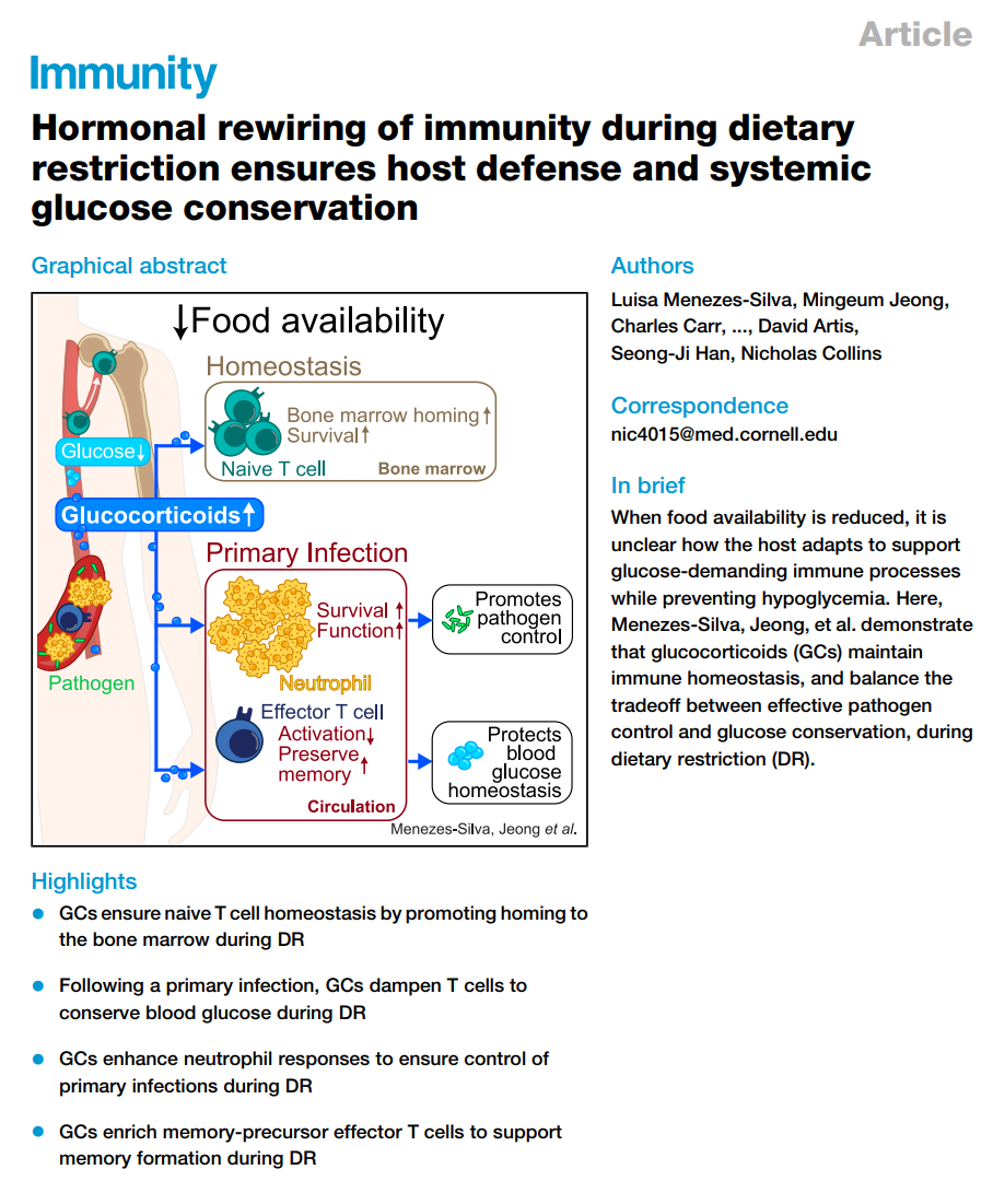 [1] Menezes-Silva et al., Hormonal rewiring of immunity during dietary restriction ensures host defense and systemic glucose conservation, Immunity (2026),