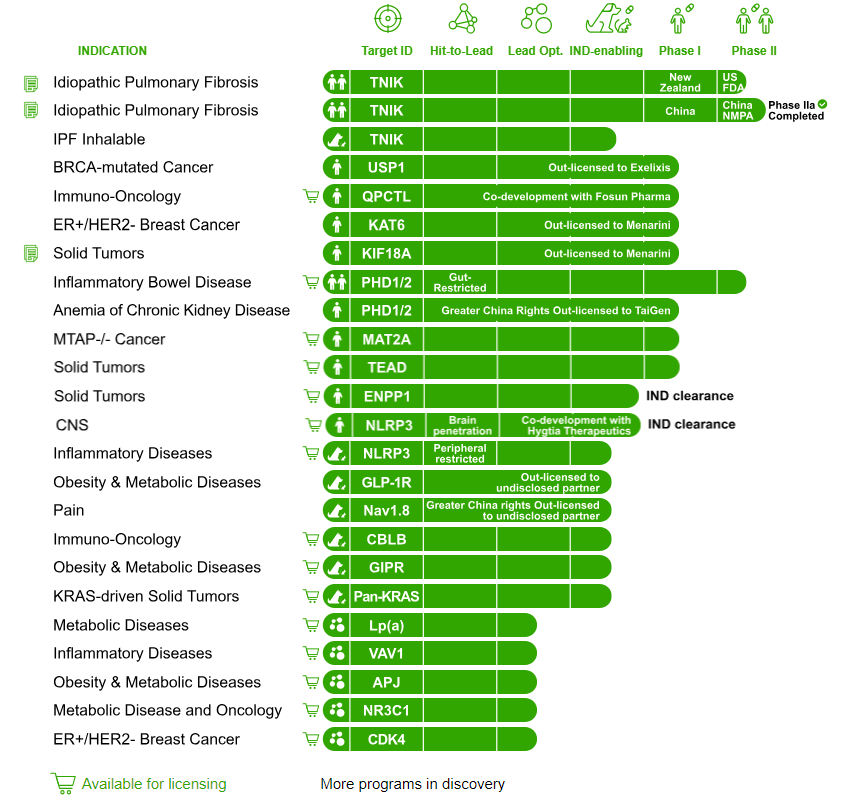 2026年3月29日,英矽智能宣布与礼来对外授权与全球研发合作, 礼来将获得一项全球独家许可,用于开发、生产和商业化针对特定适应症、目前处于临床前开发阶段的、具有潜在“同类最佳”水平的新型口服治疗药物。此外,英矽智能与礼来还将围绕礼来选定的靶点开展多项研发项目合作。依据协议条款,英矽智能将有资格获得1.15亿美元首付款,并在后续达成开发、监管及商业化里程碑后获得进一步付款,使交易总价值最高可达约27.5亿美元;此外,英矽智能还将获得基于未来销售额的分级特许权使用费(royalties)。