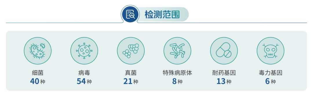 ① 儿童及成人急性呼吸道感染主要病原体全覆盖,疾控监测靶标及重要分型一网打尽;