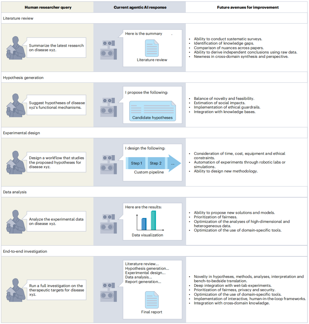 目前,Agentic AI 已应用于生物医学研究的多个环节——
