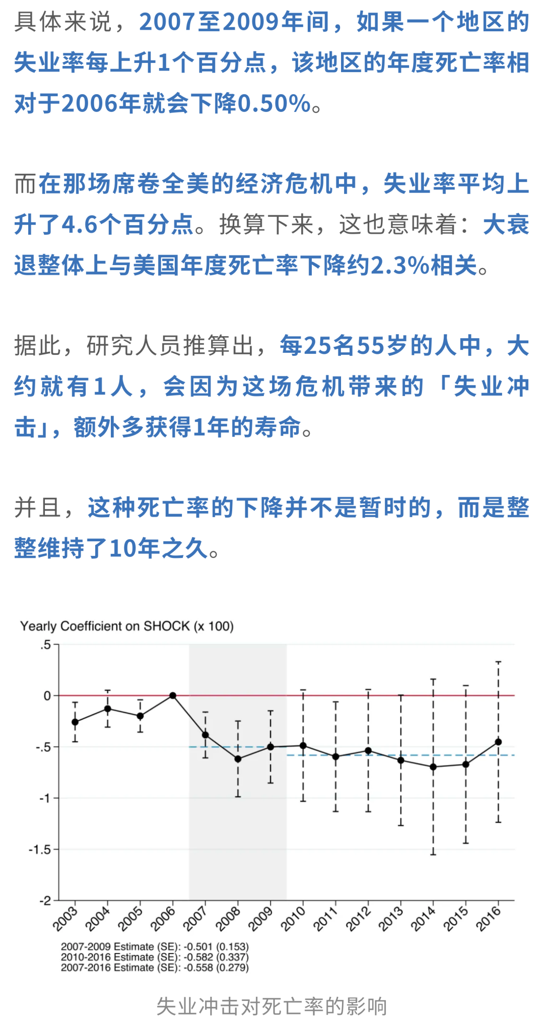 分析结果表明,在大衰退期间,就业率跌得越狠的地区,死亡率反而降得越明显。