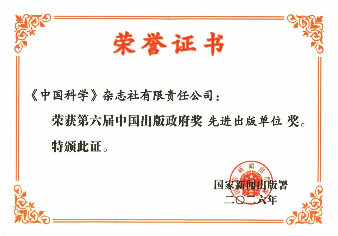 《中国科学》杂志社荣获第六届中国出版政府奖先进出版单位奖
