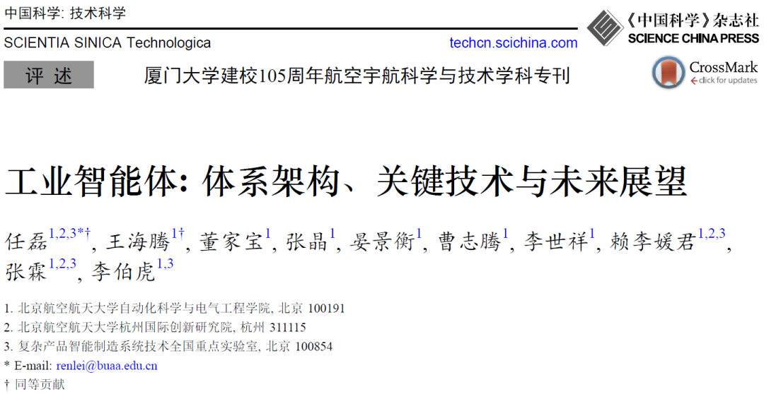 原文信息:任磊, 王海腾, 董家宝, 等. 工业智能体: 体系架构、关键技术与未来展望. 中国科学: 技术科学, 2026, 56(3)