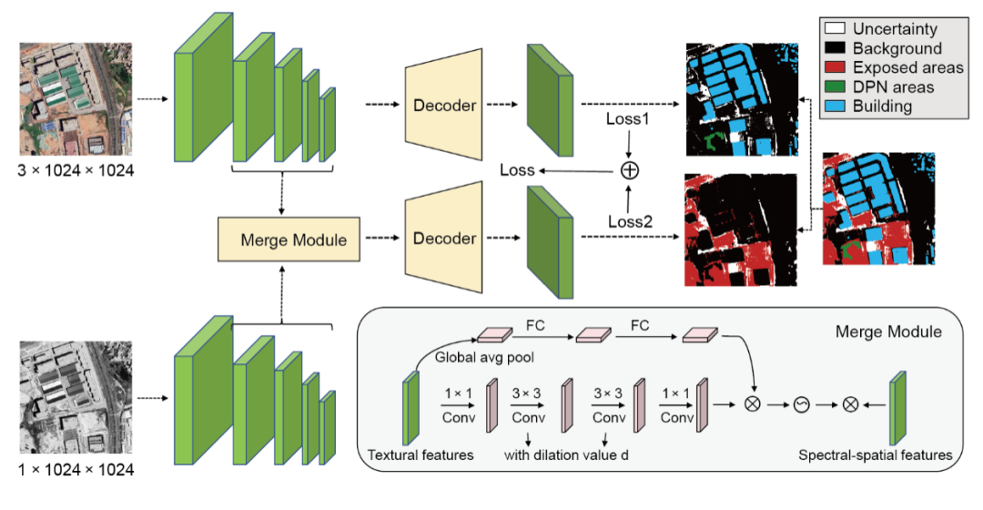 图2. 光谱-纹理双分支语义分割模型。图像数据 © Google。