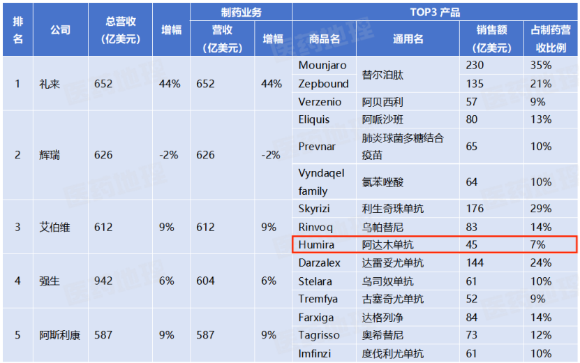 2025全球药企排行榜(按制药业务营收排名)