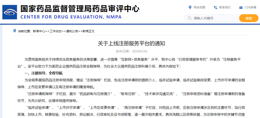 CDE上线“注册服务平台”,提供药品申报“全导航”!