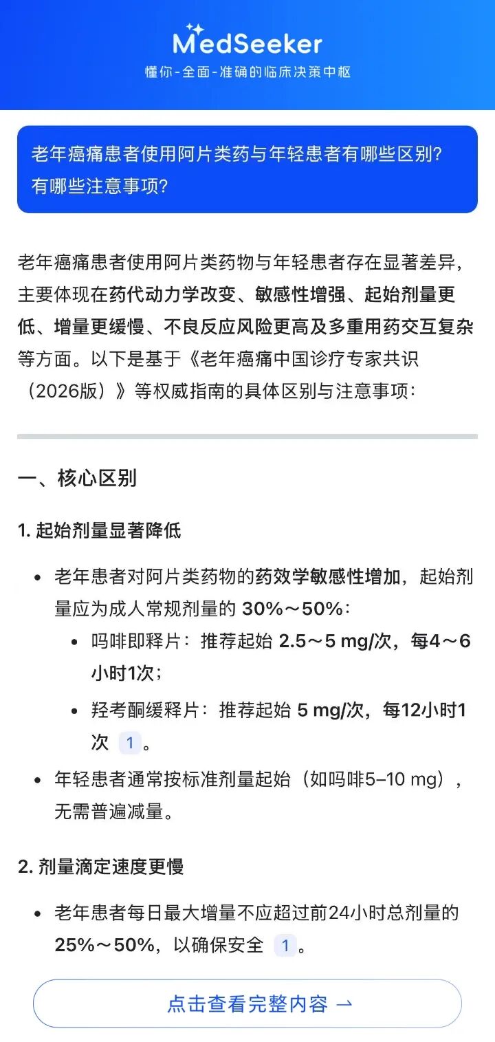 吗啡和羟考酮是老年癌痛患者最常用的强阿片类药物,存在较大的个体差异。