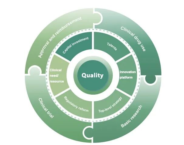 上述变化的起点,是十年前以高标准推动的行业规范化进程。“质量”逐步从合规要求演变为研发与评价的核心导向,临床价值导向的研发理念逐步确立。此后十年,中国围绕“质量”这一核心,逐步构建起覆盖创新药全生命周期的协同体系。从基础研究、临床试验、审评审批,到医保支付、临床使用,七大关键要素相互支撑、协同发力。质量既是这一生态的起点,也是贯穿始终的主线。